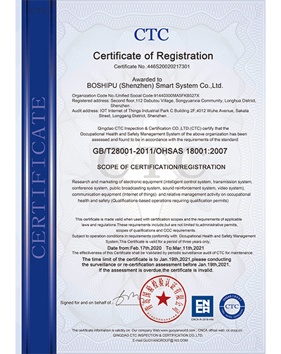 職業(yè)健康安全管理體系認(rèn)證證書(中文)