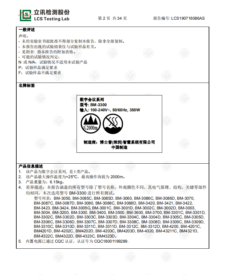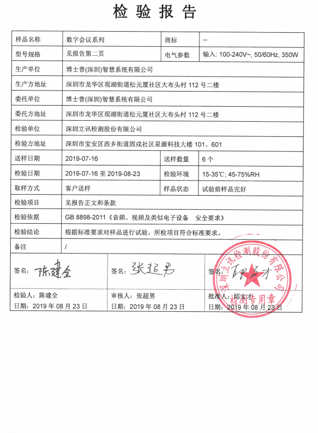數字會議產品檢測報告