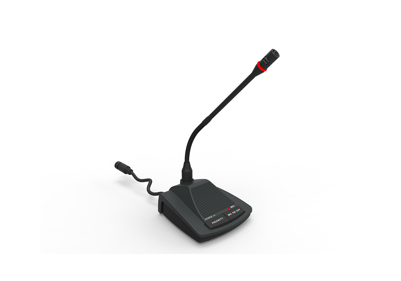 ★采用心型指向性電容式拾音器,帶雙色指示燈,發(fā)言為紅色,申請發(fā)言為閃綠色,且在休會期間可拆卸;