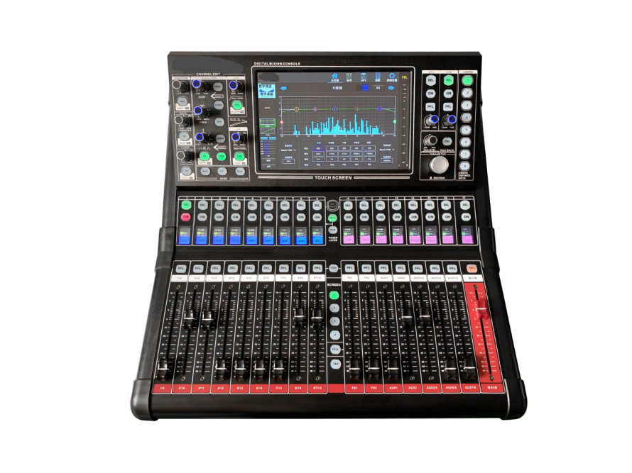 20.輸出處理:高低通濾波,15-31段參量均衡(GEQ支持通過在推子上操控),壓縮器,延時,相位