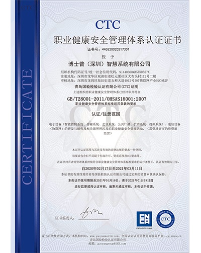 職業(yè)健康安全管理體系認(rèn)證證書(中文)